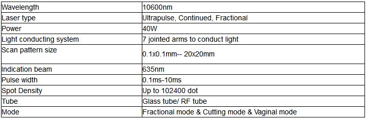 Spezifikationen von fraktioniertem CO2-Laser