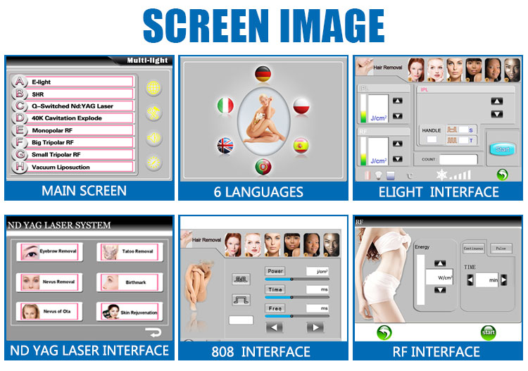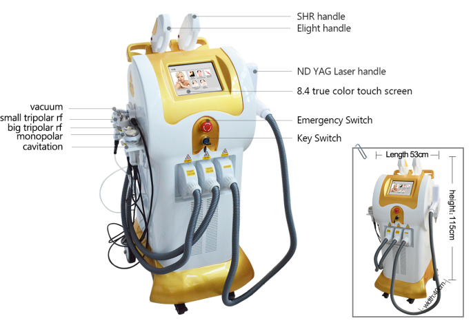 - Handstück: elight + shr + nd yga laser + kavitation + vakuum + rf YA