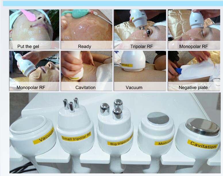 4) Kavitation + Vakuum + RF Griff:Verwendbar zu 6 Arten des Therapiebereichs, um die Behandlung auf der Ecke des Auges und anderer Bereich auf Gesicht sicherzustellen.