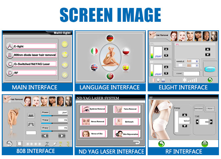 | modle | Elight + 808nm diode laser + laser ND Yag + RF V16 |