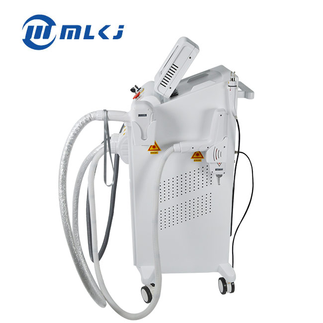 Cette machine combine Elight (IPL + RF), laser à diode 808nm, laser ND Yag, RF dans une seule machine, pour l'épilation professionnelle, le rajeunissement de la peau, le détatouage, le resserrement de la peau, etc.