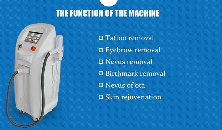 2) 1064nm de longueur d'onde: se débarrasser des taches de rousseur et de la tache jaune, tatouage des sourcils, tatouage de la ligne des yeux, tache de naissance et naevus d'Ota, pigmentation et taches de vieillesse, naevus en noir et bleu, rouge écarlate, café profond, etc. Couleur.