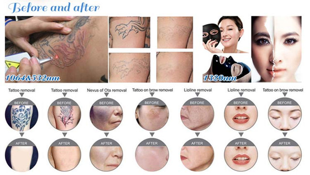 3) Adjustable 1064/532nm for big area tattoo removal .