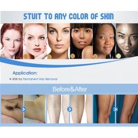 2) The 808nm laser diode allows light to penetrate deeper into the skin and safer than other lasers. Since it can prevent the pigment melanin in the epidermis of the skin, we can use it for permanent hair removal of all hair color in the six skin types, including tanned skin.
