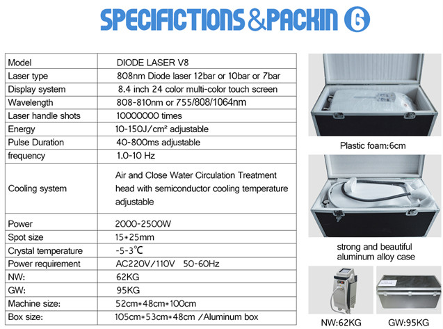 *10 bar 808, 12 bar 808, 16 bar 808, 3 wavelength 755+808+1064nm can be chosen