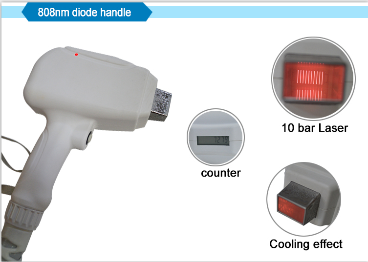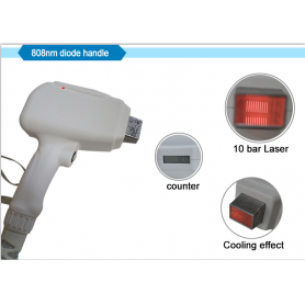 Newest diode laser handle, with super cooling effect, big spot size 15*25mm for fast hair removal. The new laser diode handle has shot counter.