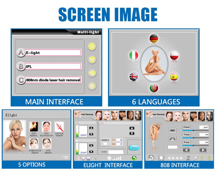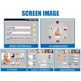 This machine is equipped with 2 handles: elight, 808nm diode laser handle.