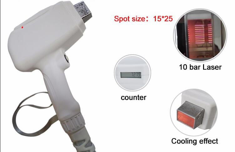 Newest diode laser handle, with super cooling effect, big spot size 15*25mm for fast hair removal. The new laser diode handle has shot counter.