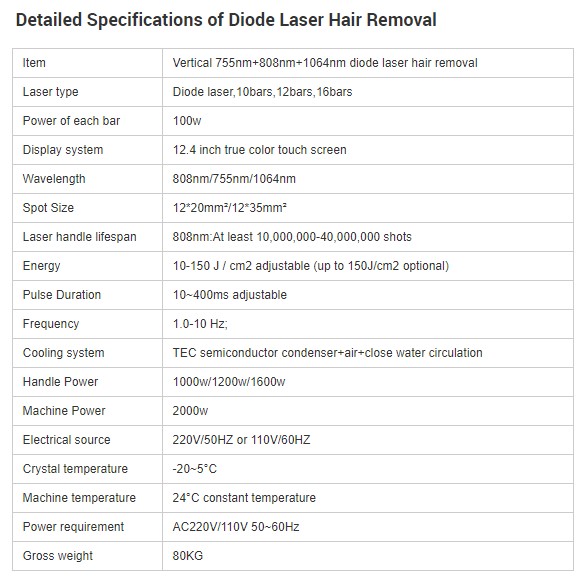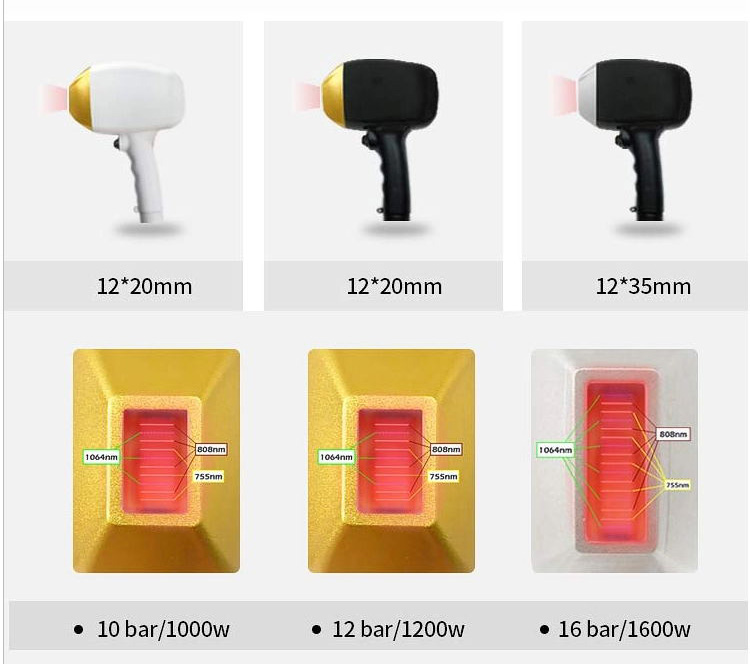 1)With fixed waveband 755nm+808nm+1064nm, spot size 12*20nm/12*35mm,