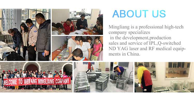 New designed 532nm 1064nm laser tattoo removal machine Weifang Mingliang company has designed new model of Q-switch ND:Yag laser, for laser eyebrow re...Testing video of Elight IPL RF 808nm diode laser