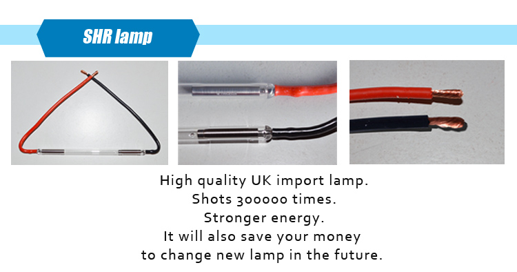 3. USA imported IPL SHR xenon lamp, stable quality, long life IPL lamp 150,000 shots, SHR lamp 300,000 shots.