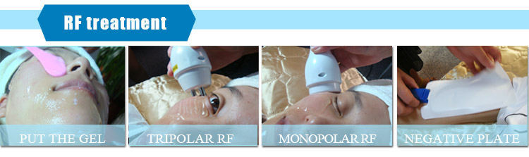 - 5 handles: Big monopolar RF, small tripolar RF, Bipolar RF, big tripolar RF, small tripolar RF