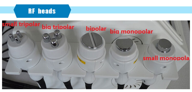 1. Big Monopolar rf head 2. Small monopolar rf head 3. Bipolar rf head 4. Big tripolar rf head 5. Small tripolar rf head |