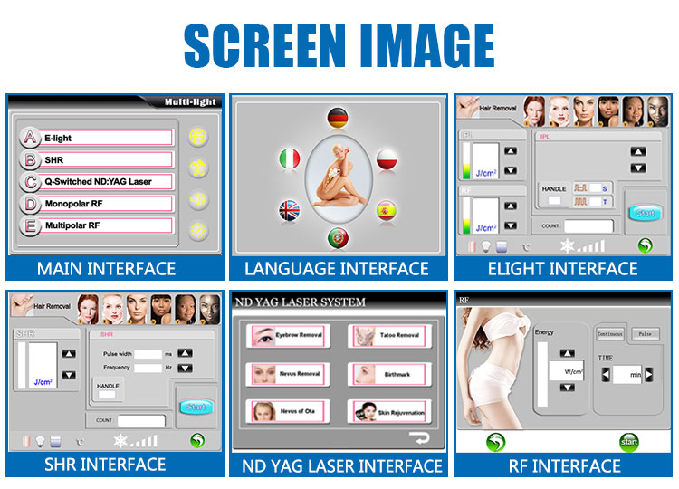 1) Elight (IPL + RF): удаление волос, омоложение кожи, подтяжка лица, затягивание кожи, удаление морщин, сосудистая работа, пигментация, акне, веснушка и т. Д.