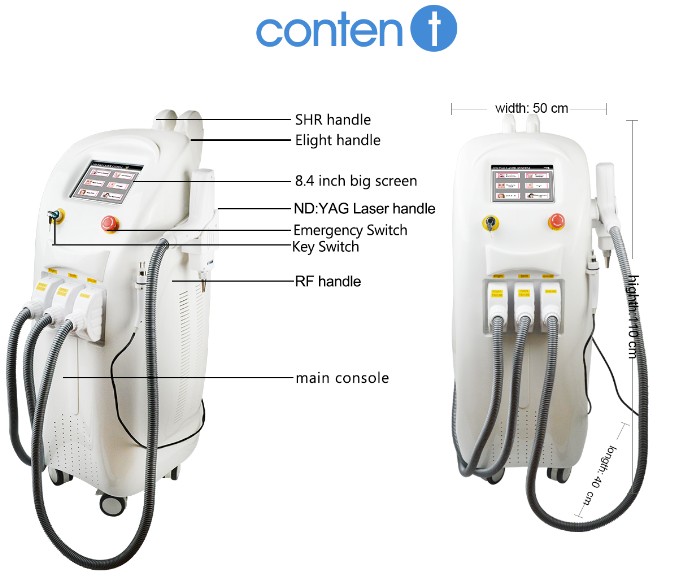 | Modle | Лазер Elight + SHR + ND Yag + RF Q7 |