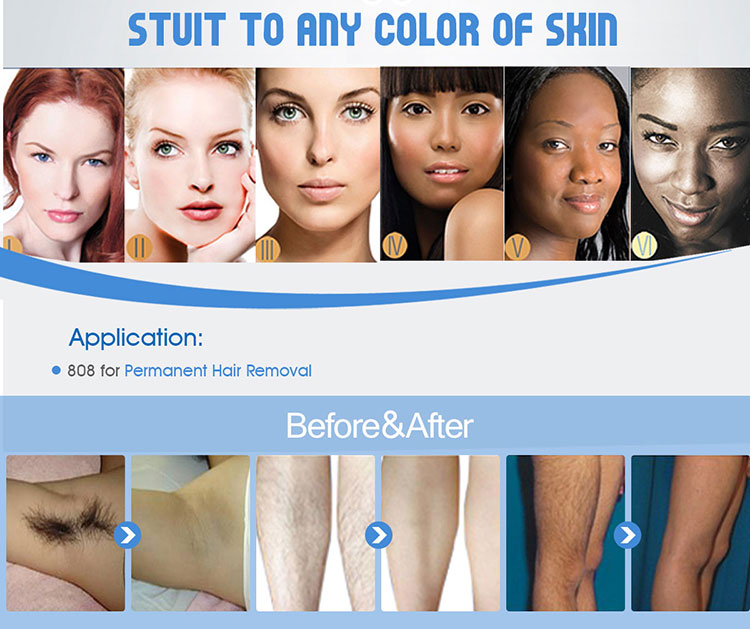 Эта 808-нм диодная лазерная машина применяется к постоянным безболезненным быстрым волосам удаление, для всех человеческих нежелательных волос.